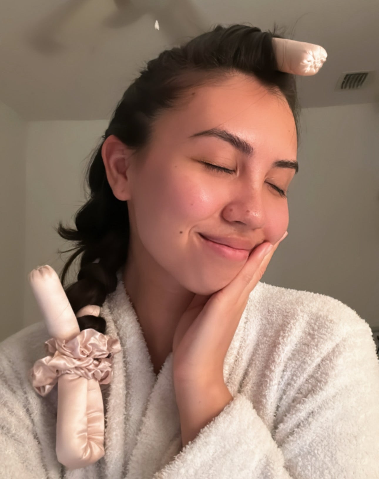 STEP 3 - Once you get to the bottom you can fold the rod over OR leave it long. You'll sleep like a baby and never realize it's there! Set lightly with minimal hairspray or water to lock in bouncy curls.